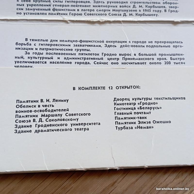 8. Набор фото открыток Гродно: 12 открыток, год выпуска - 1972