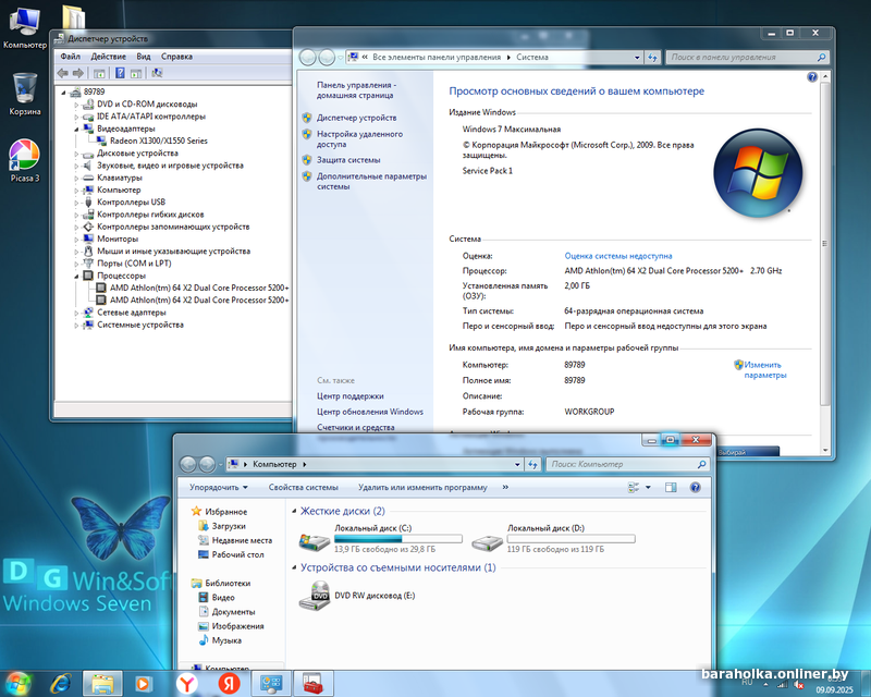 1) Процессор AMD Athlon 5200+ 2 ядра 2.7 гц