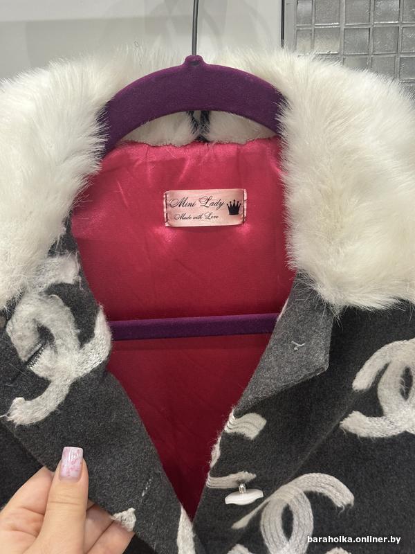 Пальто для девочки в стиле Chanel. Утепленное, с узором из логотипов Chanel и белым меховым воротником. На рост примерно 128-134. Состояние прекрасное. Всего за 45 руб. Могу выслать почтой. +37529-3435609Минск