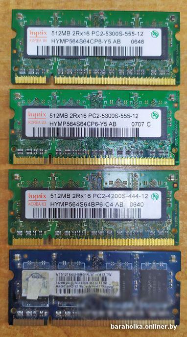 • Оперативная память SODIMM SO-DIMM DDR2 512MB Б/у. Все рабочие. Есть 4 шт.Минск