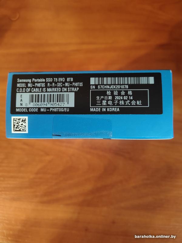 • Продам SSD Samsung T5 EVO 8TB. Новый,оригинал,заводская упаковка.любые проверки +37525 678 20 00Минск