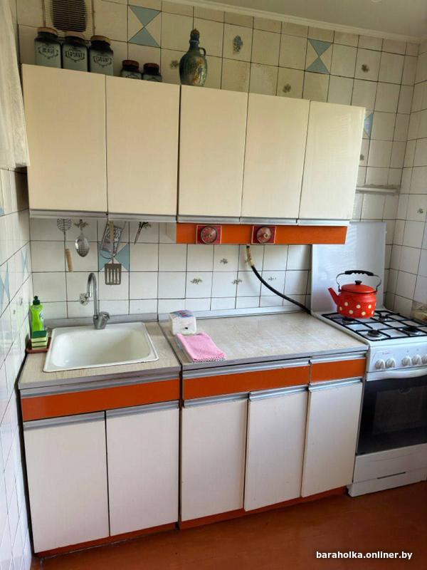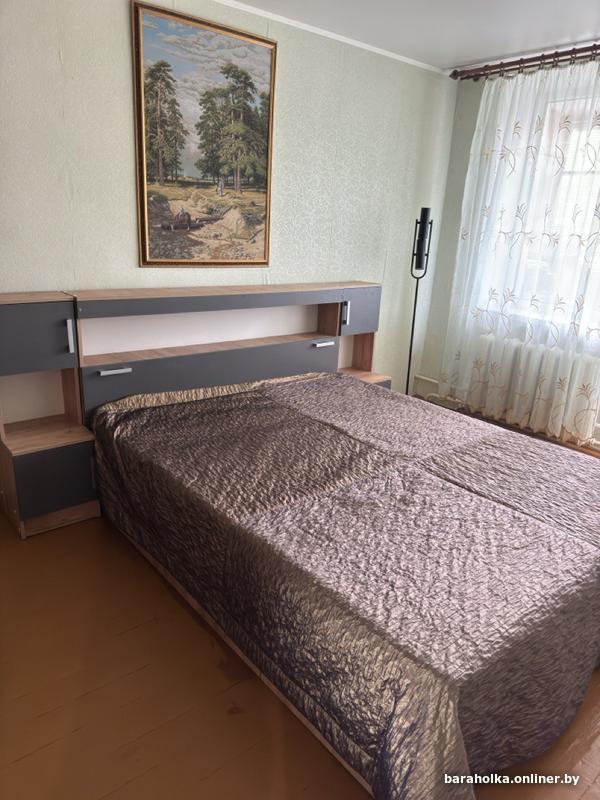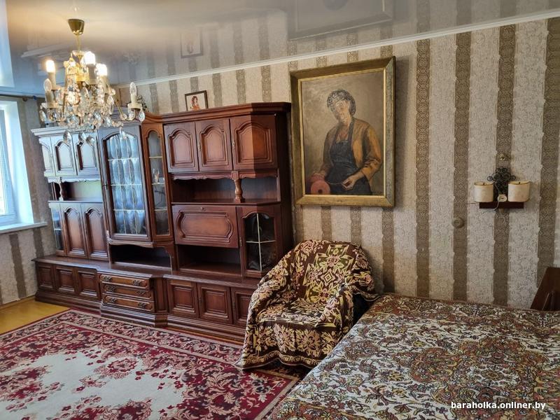 В квартире добротная немецкая мебель, в спальне новая кровать, полки и новый матрас.