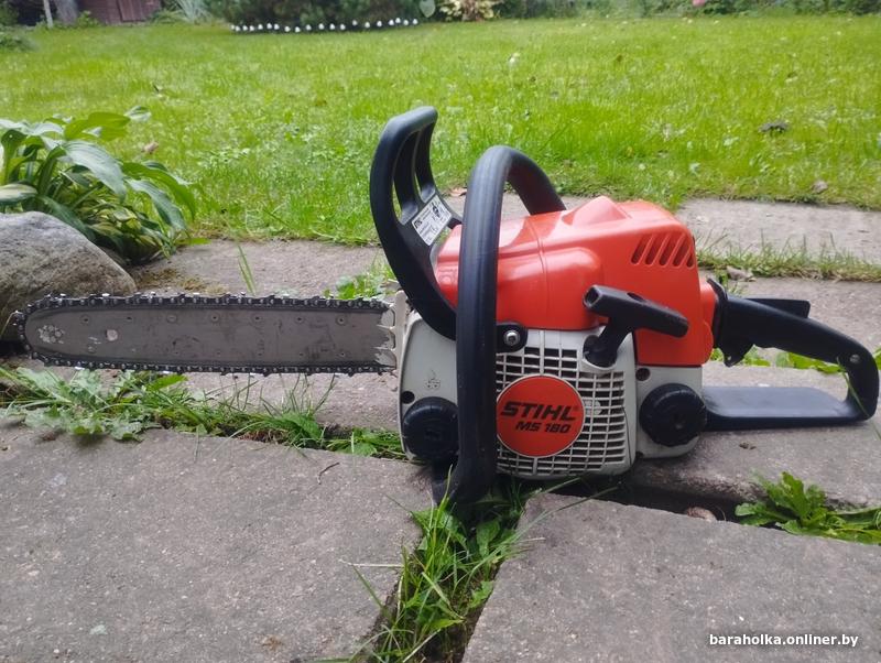 Бензопила Stihl MS 180. БУ. В комплекте: пила, шина, чехол на шину, ключ, два комплекта цепей.