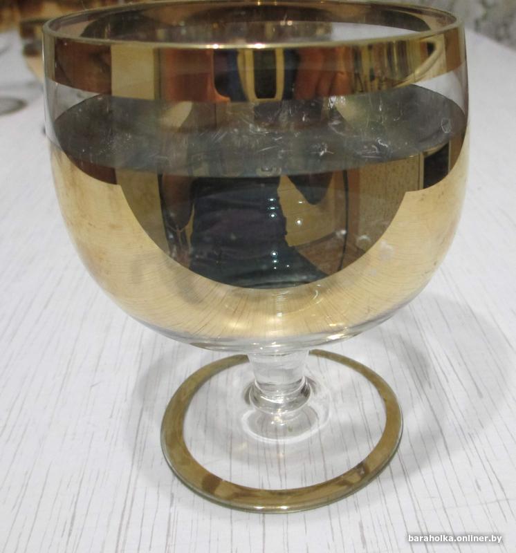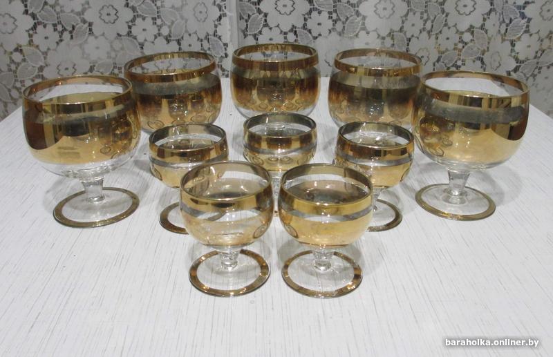 3. Рюмки и фужеры по 5 штук из 50-ых годов. Неман. Много настоящей позолоты, на позолоте есть следы времени. Фужеры - объем 200мл, высота 10см, Рюмки - объем 50мл, высота 6см.