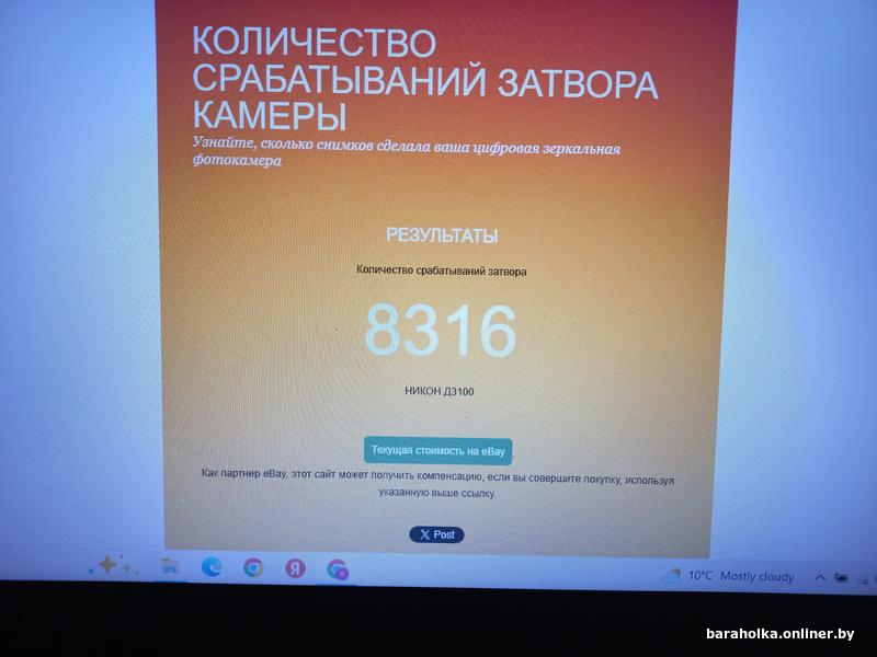 Зеркальный фотоаппарат в идеальном состоянии. Практически все время лежал в футляре. Количество сделанных фотографий - 8316.
