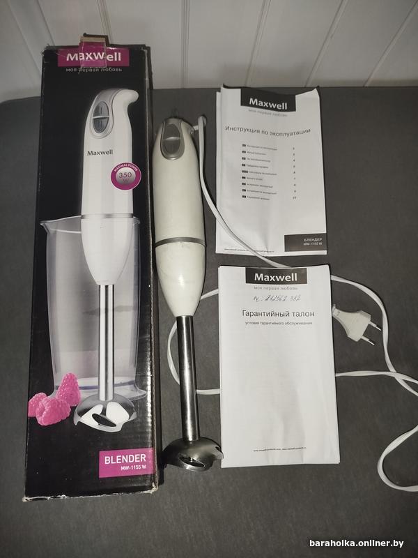 Погружной блендер Maxwell MW-1155 W, 350Watt, 2 скорости. Рабочий, на пластиковом корпусе есть сколы и трещины (на работу не влияют)