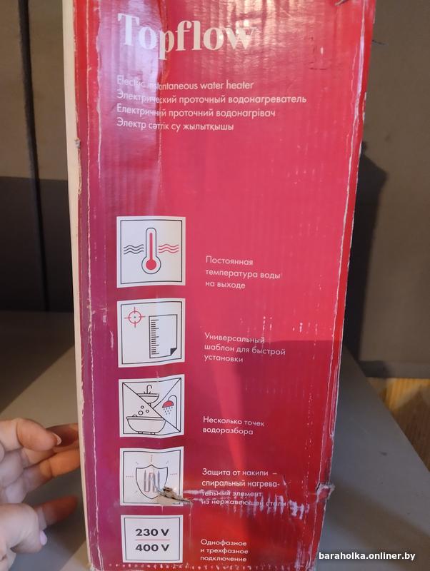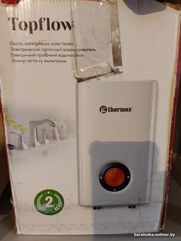 Продается электроводонагреватель проточный Thermex Topflow 8000, не был в эксплуатации. Находится в г. Витебске, возможна доставка по договоренности.