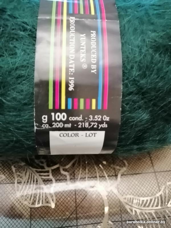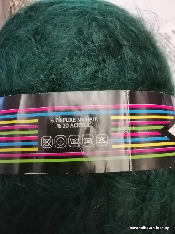 Мохер красивого глубокого зелёного цвета. Выпуск 1996 год. Состав: 70% мохер, 30% акрил.