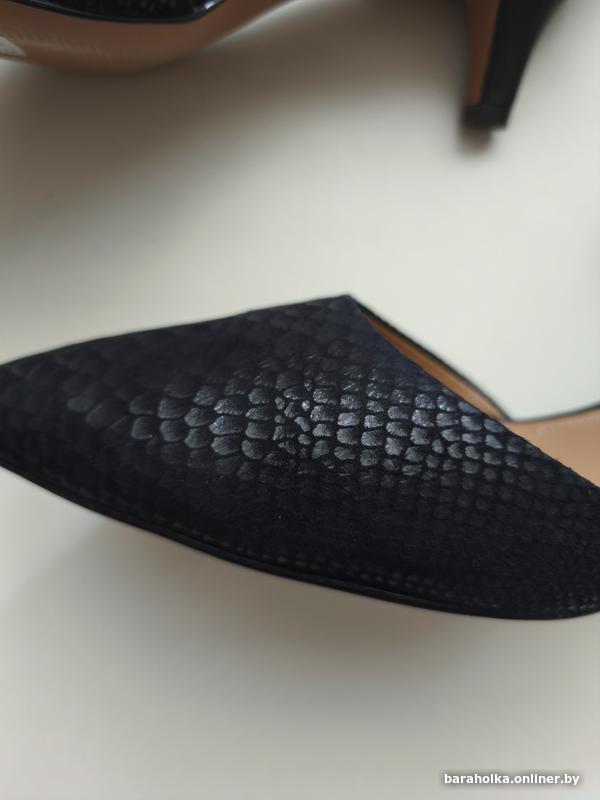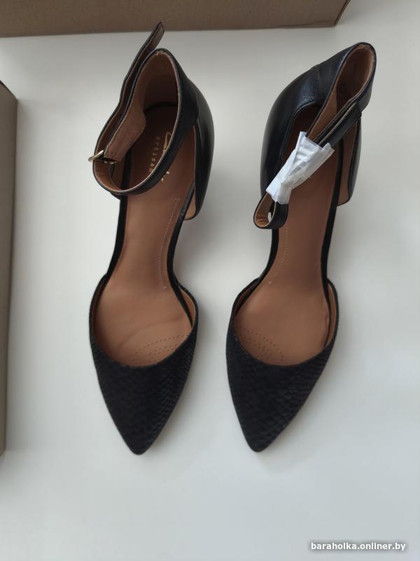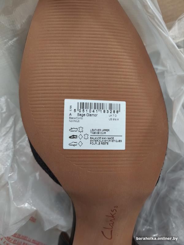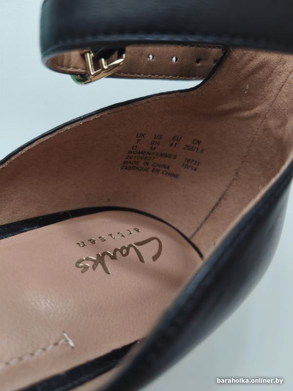 Новые туфли фирмы Clarks, размер указан EU 41, UK 7 fit D, US9,5 М, по стельке 26 см примерно, ширина 8 см, 5 см каблук. Комбинированная натуральная кожа сверху и внутри, ортопедическая стелька.