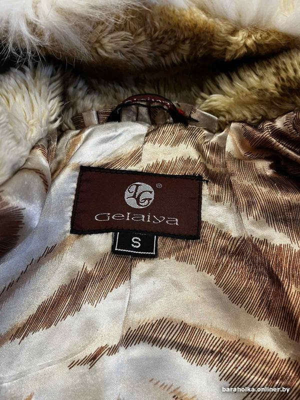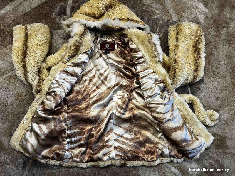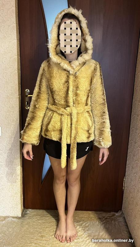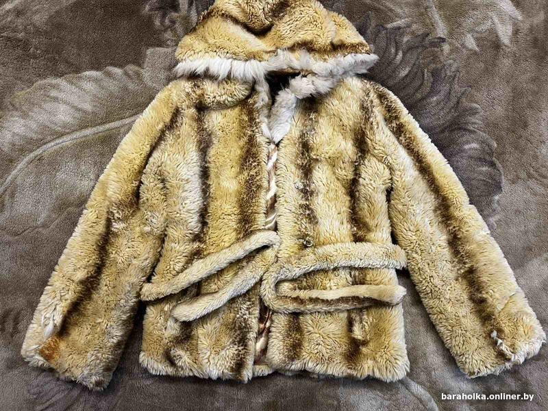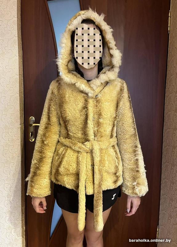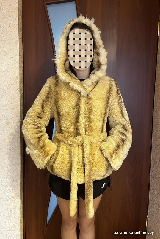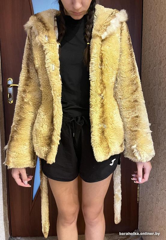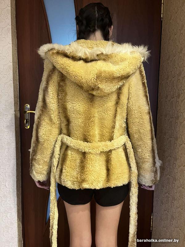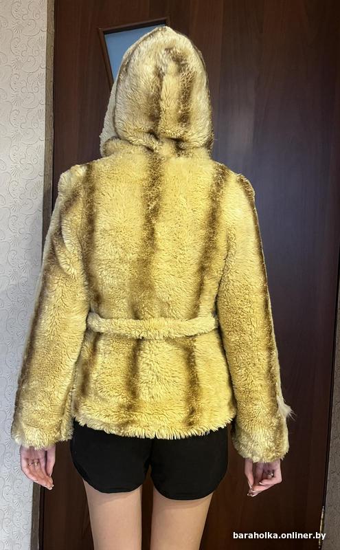 Яркая шуба, жёлтого цвета, в коричневую полосу, размер 42-44, б/у, цена 40 рублей, +375293583876