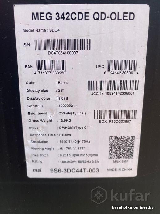 • Новый игровой монитор MSI MEG 342C QD-OLED. Привезен из Европы.Брест