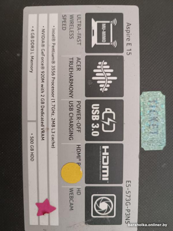Продам Ноутбук Acer Aspire E5-573G-P3N5 . Рабочий. добавленна оперативная память +6гб. Из нюансов: разболтан порт USB.