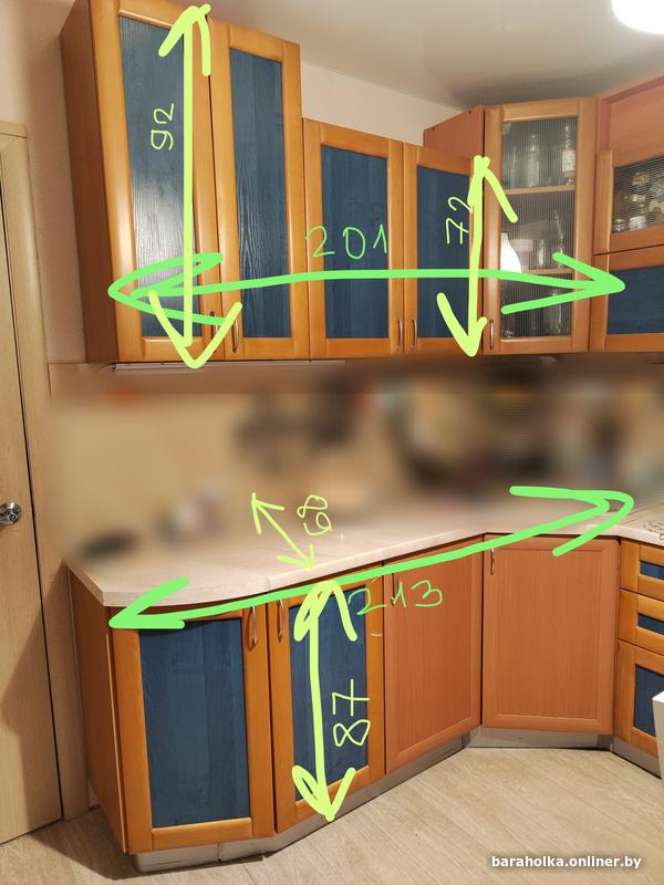 Кухня в нормальном состоянии, есть следы эксплуатации, конечно же. Все дверцы работают, полки ездят.