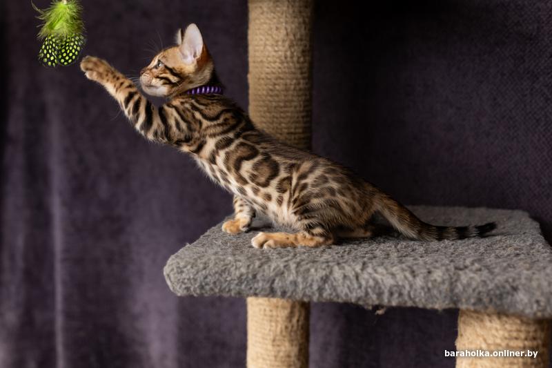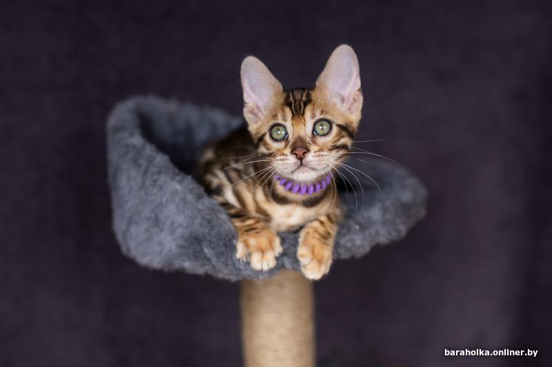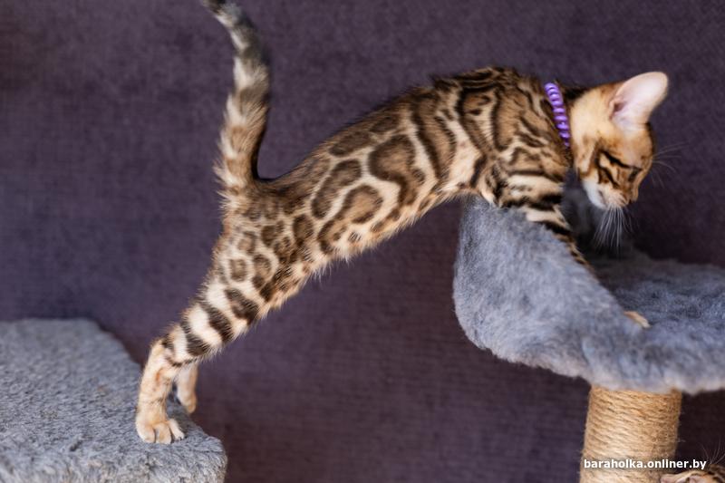 Невероятно ласковая бенгальская девочка. Очень нежная мурчалочка. Красивая мордочка и нежнейшая шубка. Бонус- бенгалы практически не линяют. Хорошая генетика. Хорошо воспитана, лоток без промахов. Умеет кушать и сухой корм и сырое мясо. Игрива, любопытнаМинск