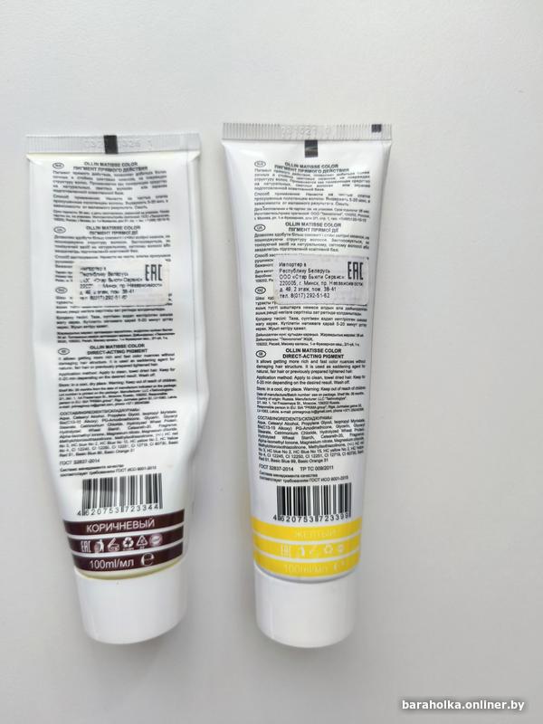 Запечатанный пигмент прямого действия Oliin Matisse color цвет желтый, 100 мл. Срок годности вышел 10/24.