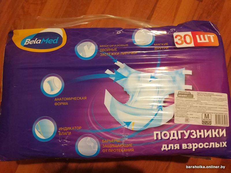 Подгузники для взрослых BelaMed, размер M (средний). Есть 1 не вскрытая упаковка (30 штук). Передам при встрече за 15р. в Серебрянке, Ленинском р-не, просп. Маяковского, Лошица, ст.м. Партизанская или ст.м. Уручье (бываю по работе в пределах 2-ух дней). Либо доставлю на любую станцию метро в почти удобное для вас время за 25р. На сообщения отвечаю или звоните +375295483476 .