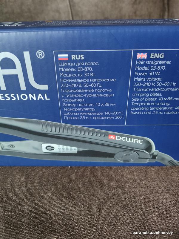 Щипцы-гофре Dewal Professional Pro-Z Slim, модель 03-870. Титаново-турмалиновое покрытие. Полотна 10х88 мм. Рабочая температура 140-200°С. Провод 2,5 м с вращением 360°. Новые, в коробке. Не использовались, но гарантийный срок прошёл уже, поэтому продаю как б/у.
