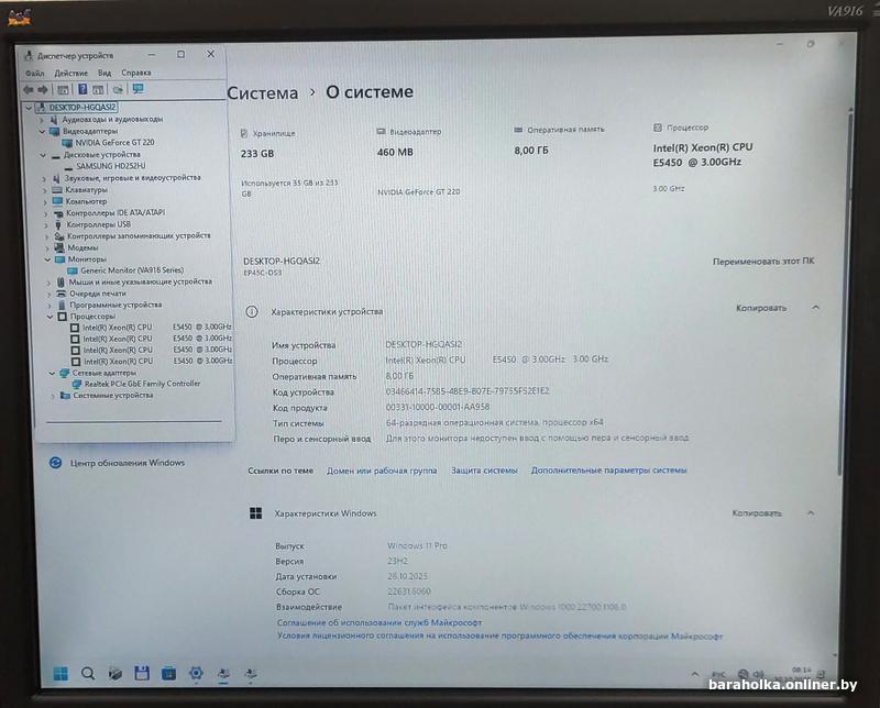 Компьютер полностью обслужен, настроен, готов работе. Установлена операционная система Windows 11 Pro 64 bit 23H2 с последними обновлениями и все необходимые программы для работы (офис 2013, плееры, кодеки, антивирус и т.д). Подойдет для нетребовательных игр.