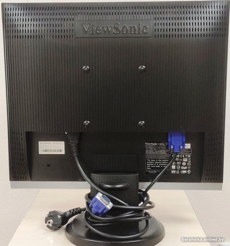 Монитор фирмы ViewSonic, модель: VA916, диагональ 19", разрешение 1280х1024, соотношение сторон 5:4 матрица TN матовая, время отклика 5 мс, частота 75 Гц, контрастность 1000:1, углы обзора 170°, яркость 300 кд/м2, интерфейс VGA.Из нюансов по монитору: он имеет вертикальные полосы, которые видны на светлых тонах.