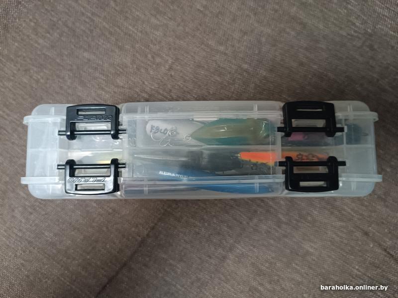 Коробка для приманок Plano двусторонняя со съёмными разделителями. Хорошее состояние, б/у. Идеально подходит для некрупных воблеров, блёсен и резины. Размеры 23 х 12 х 6,5 см. 15 руб.