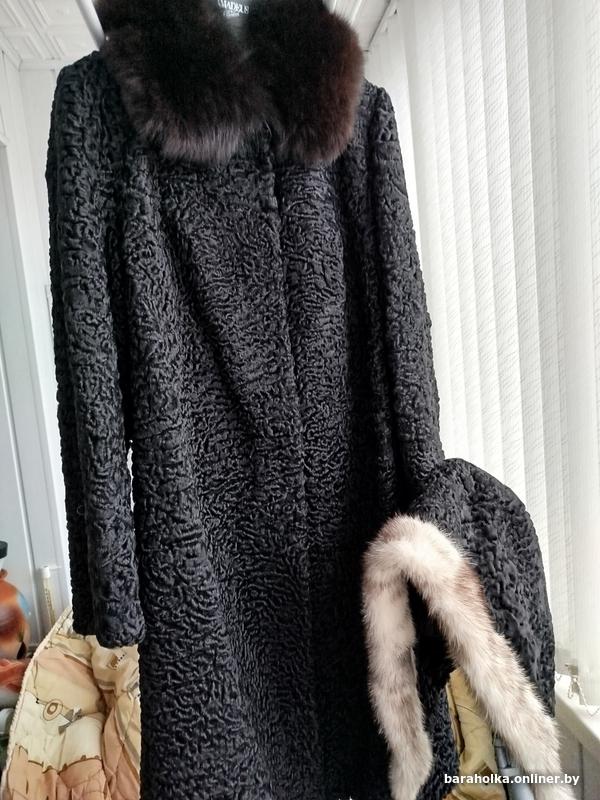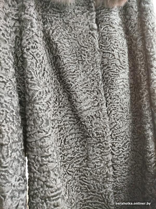Шуба из качественного красивого каракуля с меховым воротником (песец,отстегивается) и капюшеном (пристегивается) с меховой отделкой на осенне-зимний сезон,размер 50 на рост 160-170см.Звонить!!!