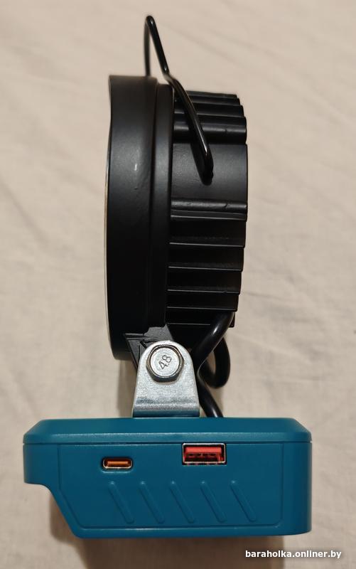 фонарь, прожектор, под акуммулятор makita, проверял работу только с китайскими акуммуляторами, отличное состояние, хорошее качество, два режима, 2 порта быстрой зарядки, мощный, яркий.