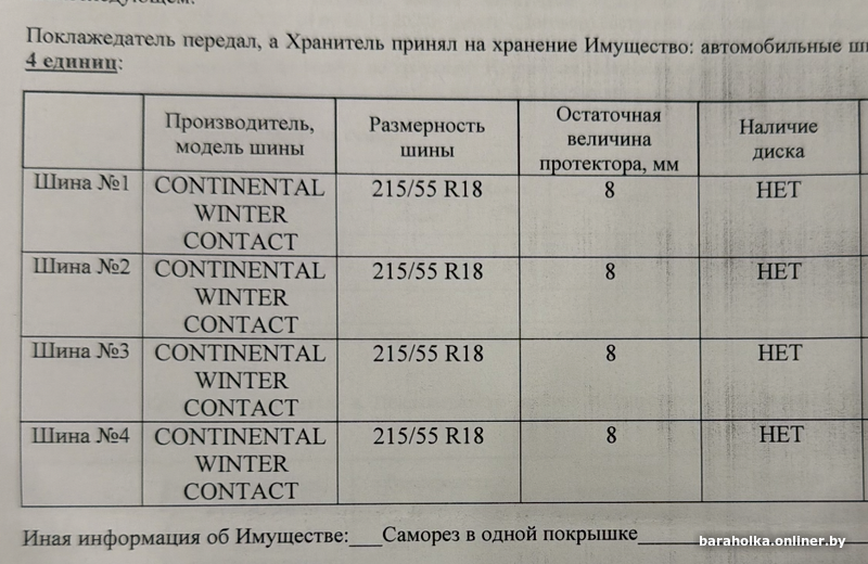 Комплект шин, куплен в декабре 2024 года. б/у один сезон, очень небольшой пробег (машина жены). Перед сдачей на хранение обнаружен саморез в центральной части протектора — легко поддаётся ремонту.