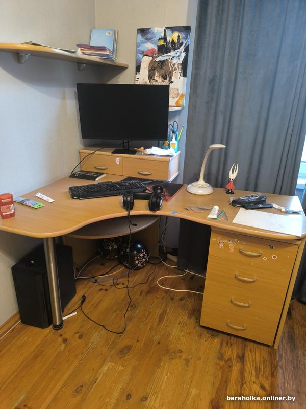 • Стол в хорошем состоянии. Большой. Тумба под столом отдельно стоящая. В подарок две настенные полки.Минск