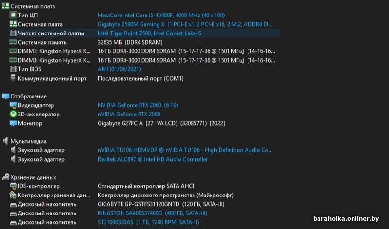 - Оперативная память: (2 шт.) Kingston HyperX 16Gb DDR4 3000МГц DDR4 SDRAM