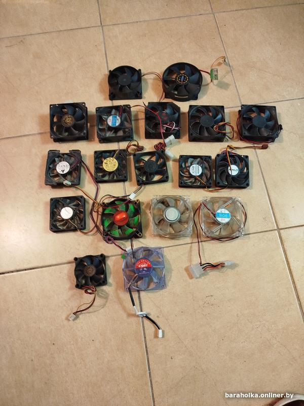 Вентиляторы 18 штук в ассортименте : 9 см, 8 см, 7 см, 6 см. Некоторые с красной светодиодной подсветкой. Весь ассортимент отлично видно на фото, продается все вместе , цена 30 руб за 18 штук. мтс 8-029-7849855Гродно