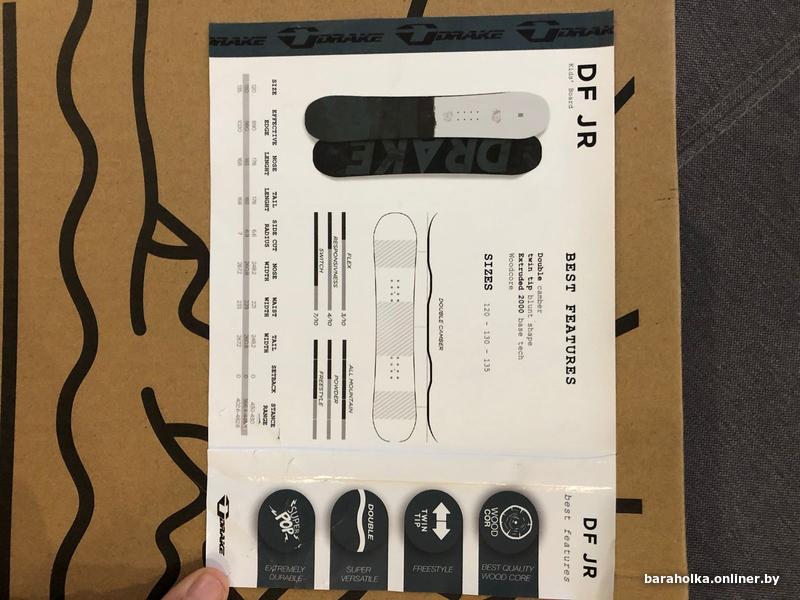 Сноуборд Drake DF Junior в отличном состоянии, прогиб Double Camber, ростовка 135, жесткость 4/10+ крепления Drake King размера М, жесткость 4/10. Отличное состояние. Подойдёт начинающим и прогрессирующим райдерам. Покупали ребенку для обучения с тренером. Доска отдавалась на консервацию, сейчас доска готова к катанию (парафин+полировка).