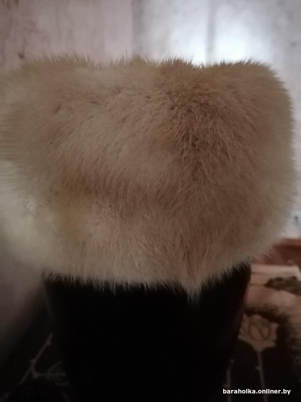 Шапка из светло-бежевого цвета норки в форме таблетки, размер 56.Состояние хорошее.