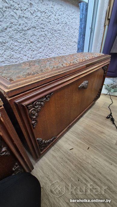 Набор винтажной мебели для прихожей «ГОМИЙ» производство СССР, материалы отделки массив дерева, гобелен, металл силумин.