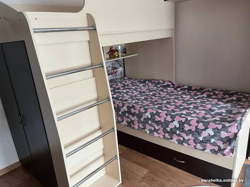 Продам кровать двухъярусную и два стола письменный на оба угла, кровать 90*190 , без матрасов. Кровать в идеальном состоянии, без дефектов. Стол со следами эксплуатации. Район Каменная горка. Саморазбор и самовывоз. +375297781473