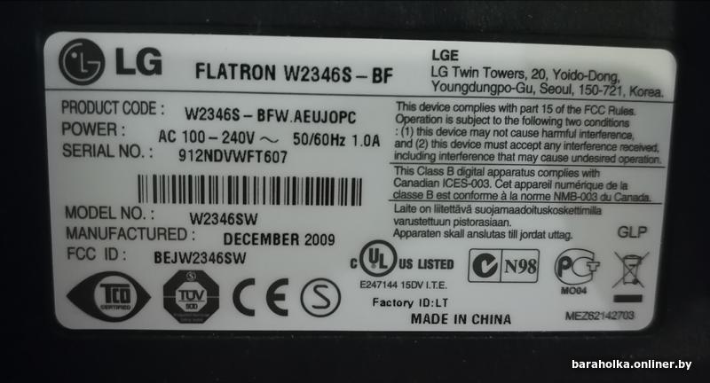 • Монитор 23" LG FLATRON W2346S - BF в отличном состоянии. Клавиатура в подарок.Минск