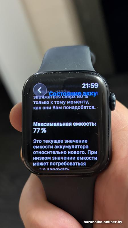 • Продаю apple watch series 7: deep blue, Aluminium, 45 mm 5 лет бу Есть 1 царапина на стекле Емкость батареи - 77%Минск