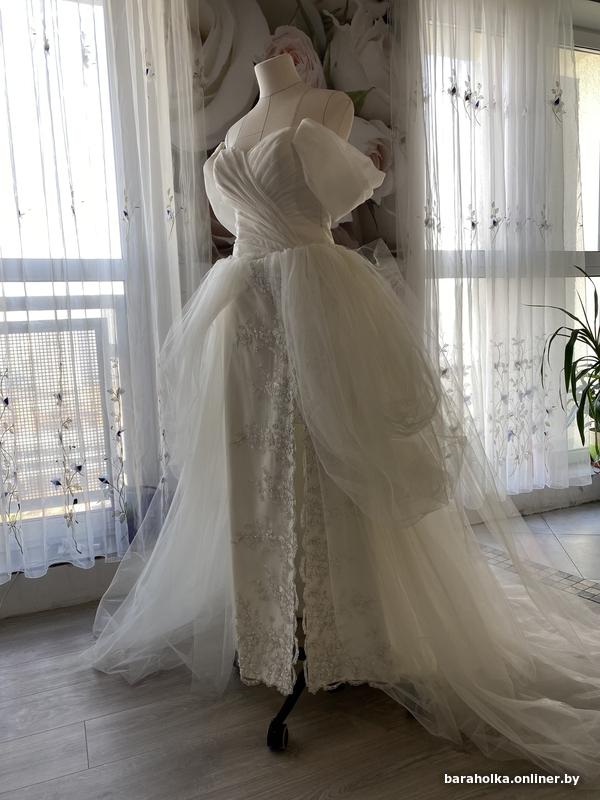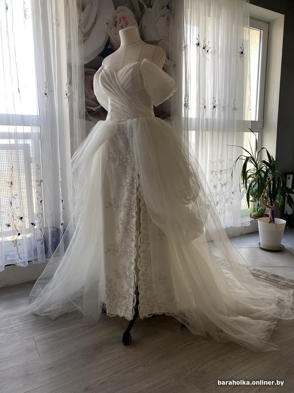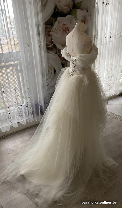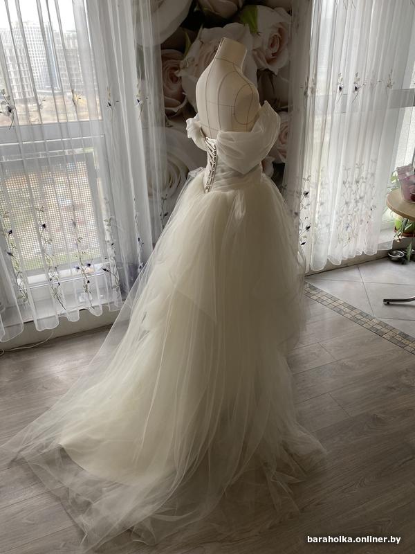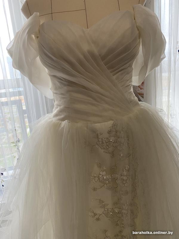 Платье свадебное, цвет Айвори, р. 44-46, регулируется шнуровкой по спинке. Разрез спереди, расшит бисером и пайетками. Шлейки съемные. Возможна подгонка , изготовление фаты.+375296992411