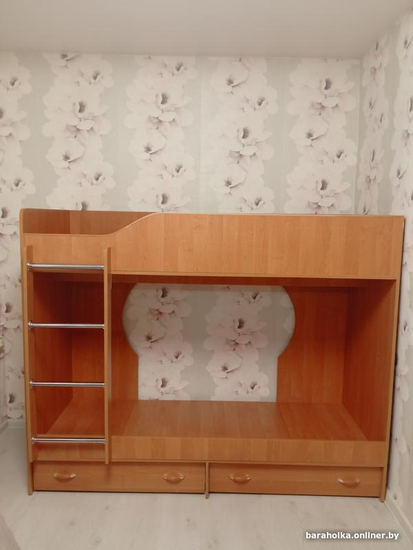 Продам двухьярусную кровать с двумя матрасами , размеры 190х150х84. Имеется два выдвижных ящика. Разумный торг уместен. Звонить по телефону +375447569222