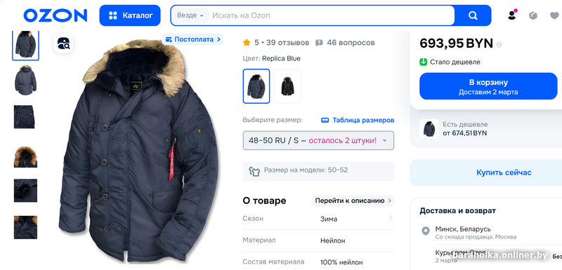 Оригинал. Не одевалась. На рост 180-190 см. Вес 75-85кг. Материал прочный матовый нейлон с ветро-защитной и водоотталкивающей пропиткой. Большой удобный капюшон. Можно носить в холодную осень. Внешние карманы на кнопках. Планка центральной молнии на пуговицах, поясная кулиса. Молнии пластик. Материал подкладки полиэстер. Утеплитель полиэстер. Плечи 52 см. Подмышки 62 см. Спина 80 см. Рукав 63 см.