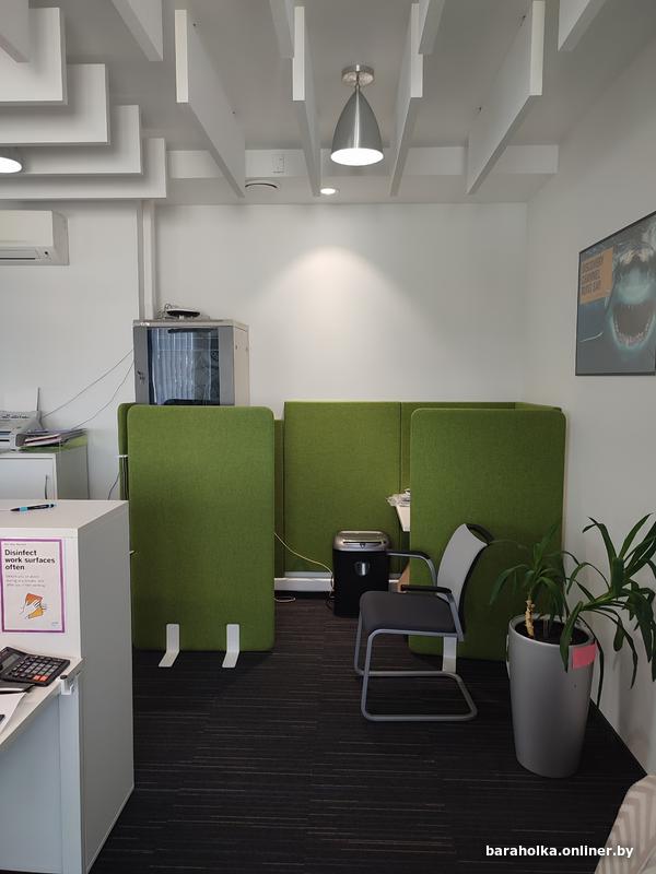 Планировка «open-space» (при необходимости возможна перегородка), выделена 1 комната - переговоров, отличный ремонт, офис полностью оборудован, сдается с мебелью. Шумопоглощающие потолок и пол. Все сделано для комфортной и нескучной работы. Санузел, душ, есть большой балкон (выходит на ул.Немига). Кондиционеры, ковровое покрытие, прекрасное естественное освещение и панорамный вид.