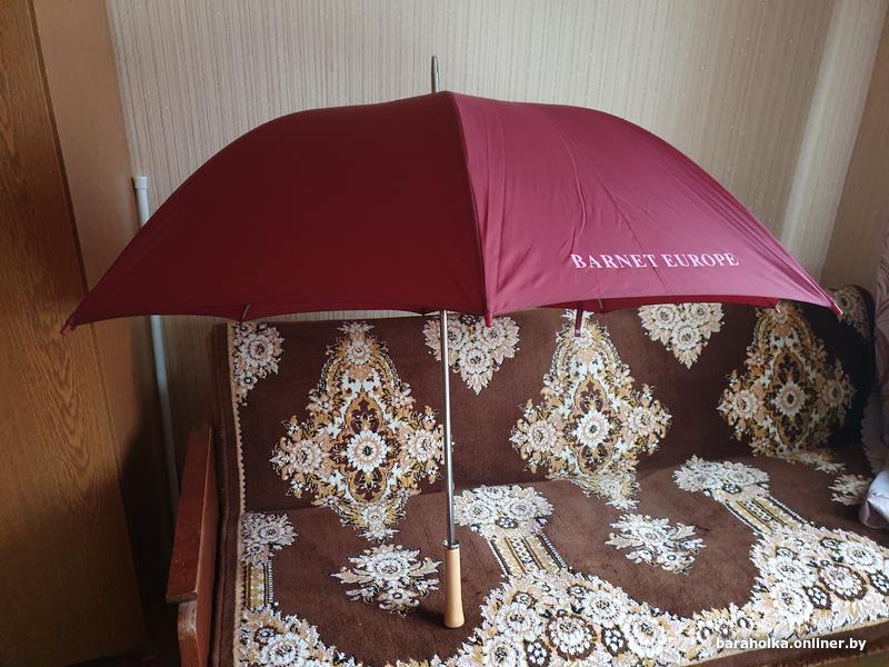 Зонт-трость механический, металлический, ручка --- натуральное дерево, цвет бордовый, длина 100 см, диаметр купола 125 см. Новый, в отличном состоянии.