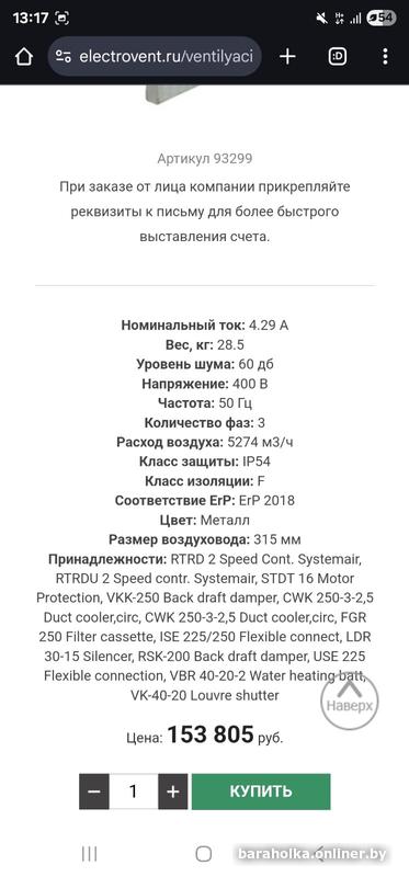 Центробежный вентилятор CT 315-4 SYSTEMAIR, новый