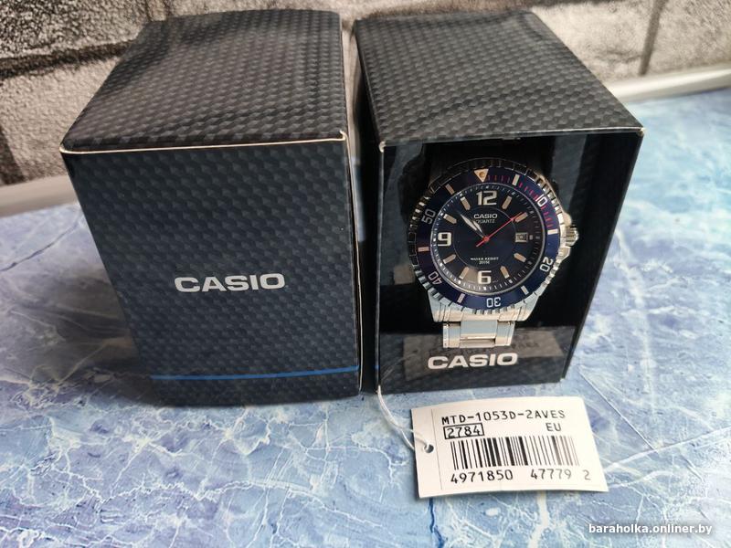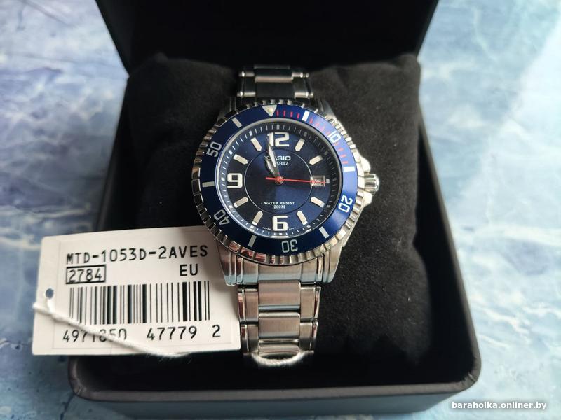 Новые в плёнках часы «Casio MTD-1053D-2A» оригинал (модуль 2784) в подарочной упаковке.Корпус стальной,стекло закаленное минеральное,мехнанизм кварцевый,водозащита 200 метров (20 Bar)-можно свободно купаться,светящиеся стрелки,крышка с винтовым фиксатором,базель с односторонним вращением,стальной браслет с застежкой ширина 20 мм по ушку,отображение даты,завинчивающаяся головка,вес 142 гр.,диаметр,диаметр 42 мм с,толщина 11.5 мм.