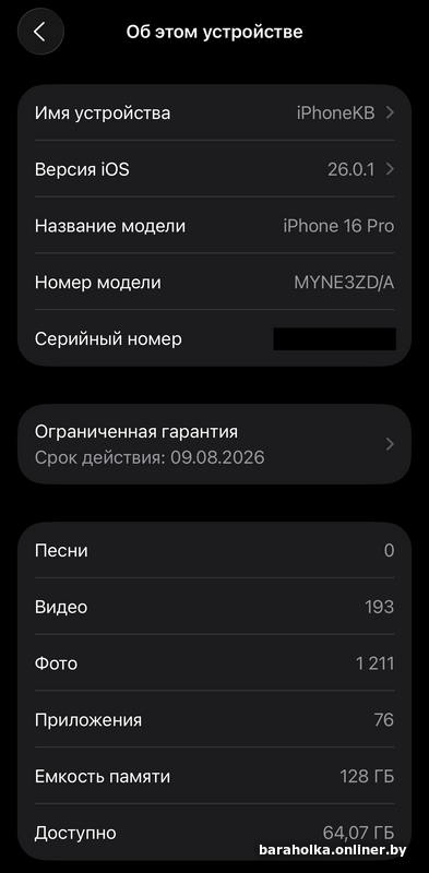 Продам Apple iPhone 16 Pro 128GB (белый титан)