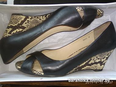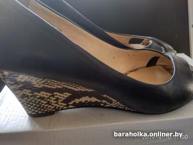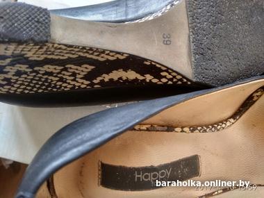 В прекрасном состоянии босоножки на танкетке со змеиным принтом из кожи 39 р Happy family. Высота танкетки 6, 5 см, длина стельки 25 см, родная набойка и профилактика. Немного маломерят на заявленный 39 р, скорее 38, 5. Носились несколько раз. Ждут любительницу стиля и комфорта по разумной цене!