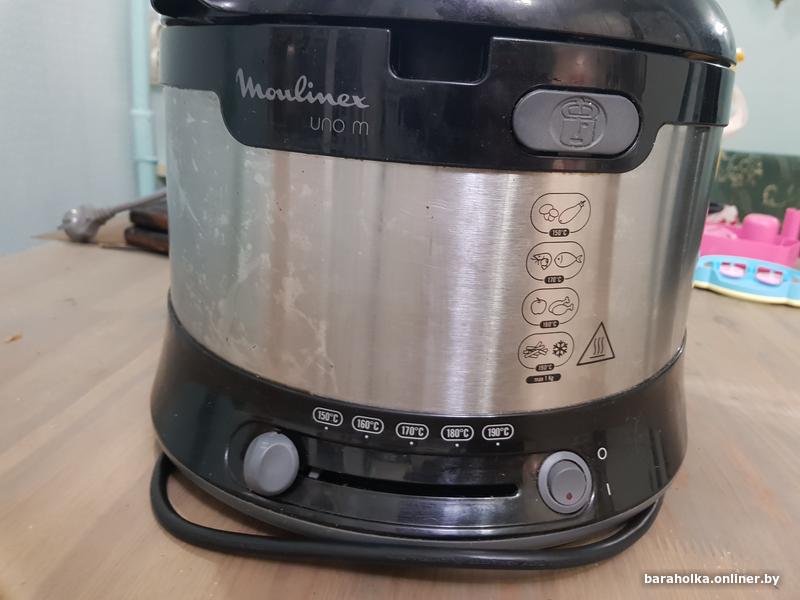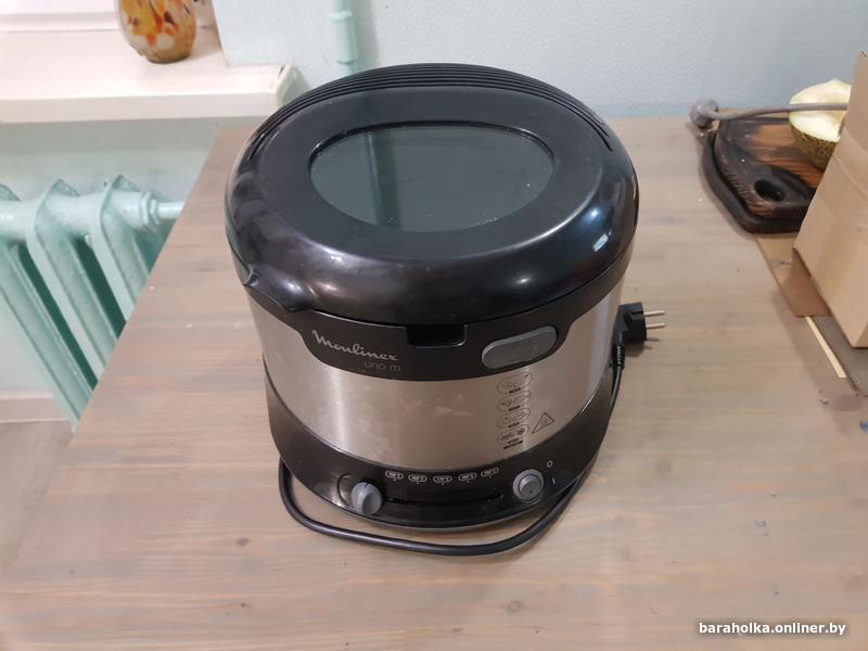 Фритюрница Moulinex Uno M, без сетки, в хорошем состоянии, полностью вымыта. Объем чаши 1,8 л. Вес картофеля 1 кг. Мощность 1600 Вт.