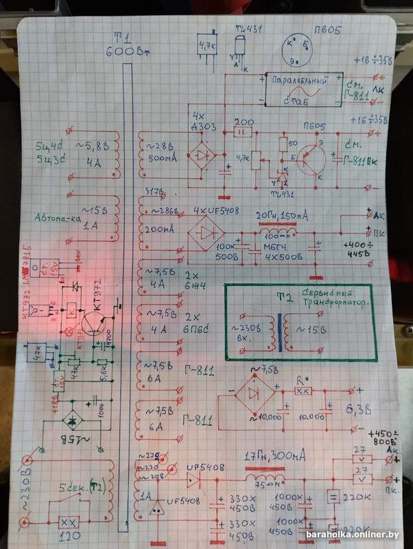 Ламповый однотактный усилитель на радиолампах:Г-811, 6П6С, 6Ж4, 5Ц4С.