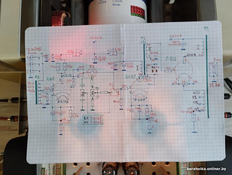 • Ламповый однотактный усилитель на радиолампах:Г-811, 6П6С, 6Ж4, 5Ц4С. Конструктор. Как-то так.Витебск