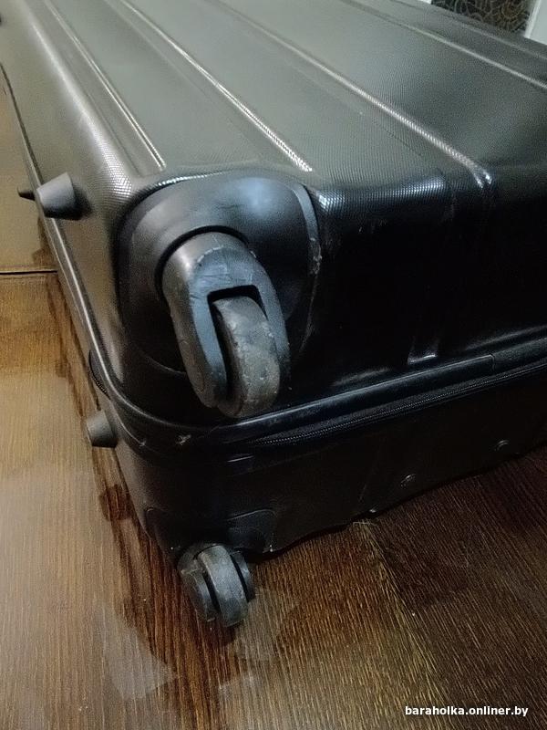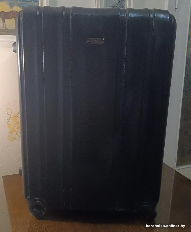 Чемодан компании American Tourister, объемом 115 литров, черного цвета, материал ABS пластик, размер 80*54*36, имеется замок, но от него потерян ключ, удобная регулируемая ручка, не застревает, в отличном состоянии, колесики поцарапанные после применения, сам чемодан почти идеальный, все замки работают, подкладка без повреждений, брендовое качество, новый стоит 1000р. Возможна доставка по Минску. Номер: +375445972505