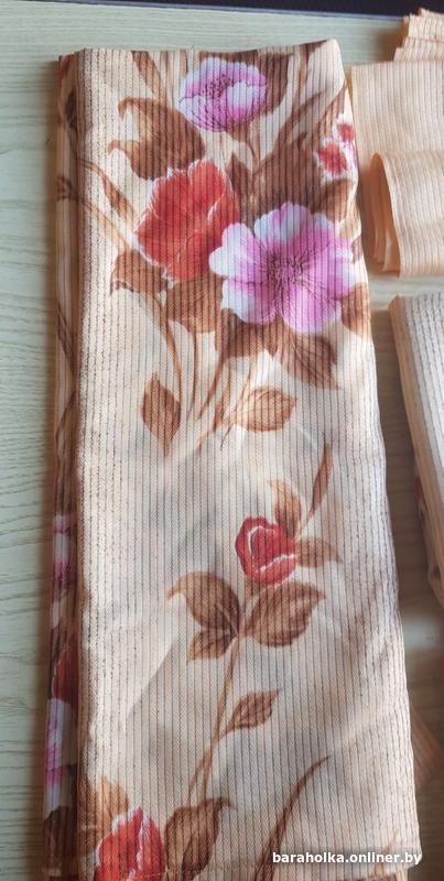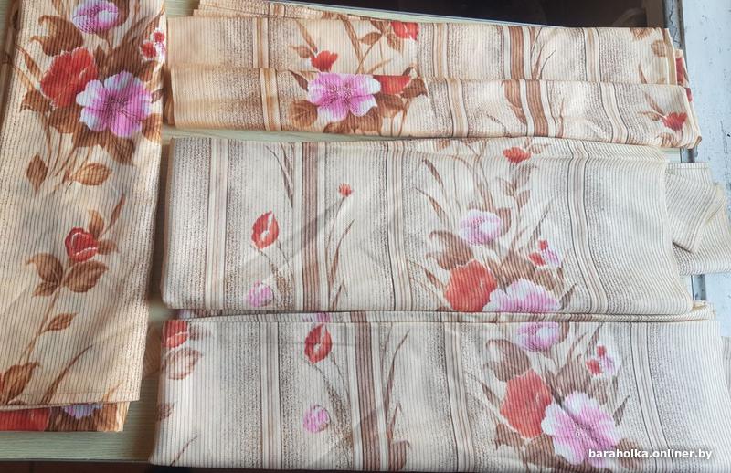Ткань в отличном виде: без пятен, дырок, выцветания или запаха. Хранилась в сухом месте, аккуратно сложена. Легкие следы складок от времени — не дефект, легко разглаживаются утюгом.